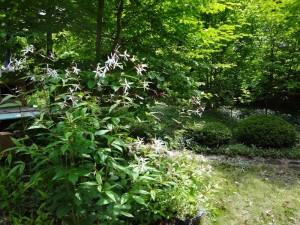 初夏ですね 投稿日時: 2012年6月8日 投稿者: yoshiko すっかり我が家の庭は緑が濃くなり 鬱蒼として来ました。 花も春の花から夏の花へ・・・ 大好きな夏ロウバイ ミツバシモツケ そしてもう咲き終わってしまいましたが 母の日のプレゼント 株立ちクレマチス