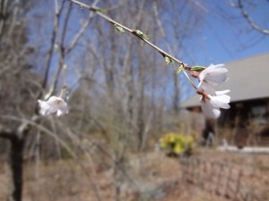 あっ、咲いた! 投稿日時: 2013年4月8日 投稿者: yoshiko 植えて何年たったでしょうか? もう諦めてました。 でも今年初めて咲きました。 たった5輪です。 あ〜 こんな花が咲くのか・・・・ ごく薄いピンク色、白に近い。 そして小さい。 来年はもっと咲くといいな。 庭には桜の木が何本もあるのですが 林の中のためか日当り悪く 花が咲いたことはありませんでした。 これはしだれ桜の花です。 待ってた甲斐がありました。