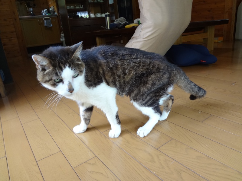 実りの秋・食欲の秋? 投稿日時: 2012年9月20日 投稿者: yoshiko 稲穂が頭を垂れ、水田は黄金色 猫のキミは涼しくなって食欲が出て来ました。 相変わらず腰が少し落ちてこの体勢で歩き回っています。 夜の9時になると布団を敷くように催促してだみ声で鳴きます。 犬の鉄平はキミとは対照的に食欲がありません。 よくよく観察すると今のドックフードが気に入らないようです。 今まで食べて来たドックフード以外の食べ物はがつがつと食べます。 贅沢を言っているようです。 一日中食べない日があります。 ここは飼い主の我慢どころ・・・食べたくなるまで待とう・・・