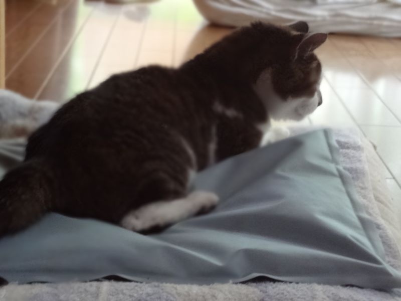 参りました 投稿日時: 2013年8月10日 投稿者: yoshiko 暑くて参りました。 日中は室内で33度になり クーラーの無い我が家は窓を全開にし 扇風機でしのぐしかありません。 でも最低気温が20度前後で 夜は過ごしやすくなるので救われます。 で、猫のキミは犬の鉄平が使用していた クールジェルマットが気に入ったらしく その上で寝ていました。 早くその快適さに気がつけば良かったのに・・・ 今日が初体験です。 猫にも辛い暑さなのでしょう・・・